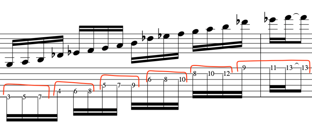 This means that we can easily exploit the scale, play it fluently and see it visually which in turn gives us complete command of it.