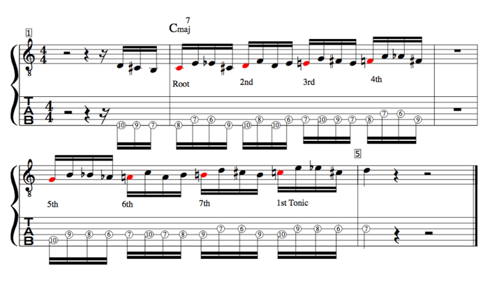 Below, we can see this applied to a C7 arpeggio.