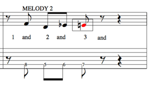 Here, it is on beat 3 in red.