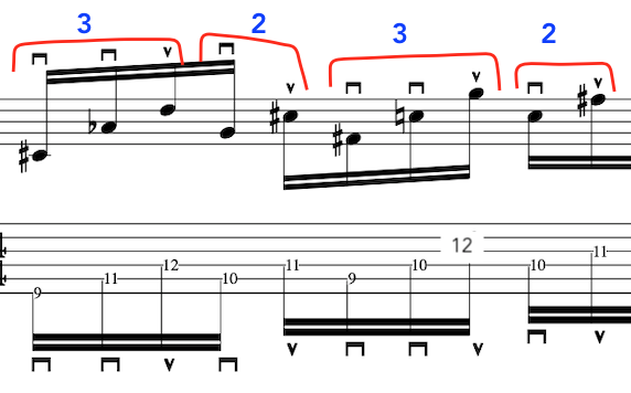 If we look at the patten below we can see the “Down Down Up” Picking pattern: